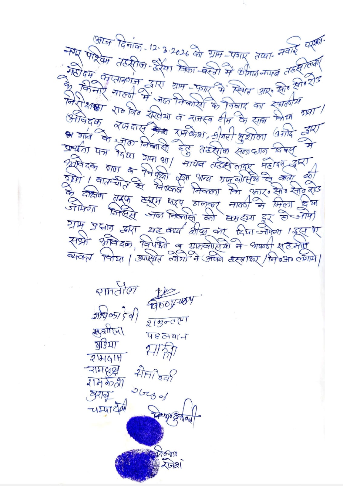 बस्ती जिले के हरैया तहसील के पगार में सरकारी नाली पर का विवाद राजस्व टीम ने मौके की पैमाईस और सुलह समझौते के आधार पर विवाद को खत्म करा दिया है।ग्रामीणों का आरोप है कि गांव में आर सीसी सड़क निर्माण से गांव का पानी निकासी बंद हो गया था लेकिन तहसील दिवस में दिए गए शिकायती पत्र के आधार पर राजस्व टीम ने मौके पर नाली निर्माण हेतु जगह सुरक्षित कराया जिसके बाद नाली निर्माण शुरू हो गया है।ग्राम पंचायत के निवासियों का कहना है कि नाली निर्माण शुरू होने से मौके पर कोई विवाद नहीं है।ग्राम पंचायत द्वारा नली निर्माण कराया जा रहा है और मौके पर दोनों पक्षों ने आपस में सुलह समझौता कर लिया है मौके पर कोई विवाद नहीं है।