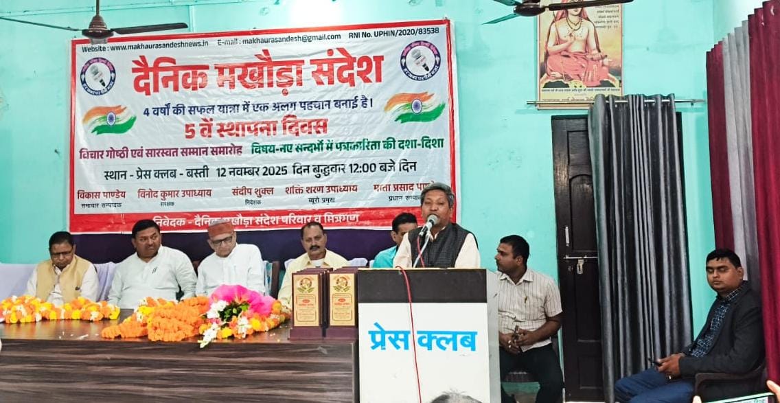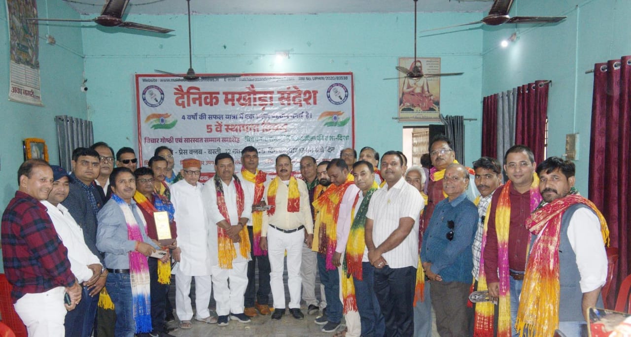 बस्ती/ हिन्दी दैनिक अख़बार ‘मखौड़ा संदेश’ का पांचवां स्थापना दिवस बुधवार को प्रेस क्लब सभागार में मनाया गया। वरिष्ठ पत्रकार प्रदीप चंद्र पाण्डेय ने कार्यक्रम को संबोधित करते हुए कहा कि आज के दौर में पत्रकार के साथ न ही समाज है और न ही सरकार, ऐसे में अखबारों का प्रकाशन अत्यंत कठिन है। इसके लिए प्रकाशकों को स्थानीय स्तर पर स्थानीय खबरों पर विशेष ध्यान देना होगा। कार्यक्रम को पत्रकार कृष्ण देव मिश्र, प्रेस क्लब महामंत्री महेंद्र तिवारी ने संबोधित करते हुए कहा कि वर्तमान परिवेश में समाचार पत्रों को प्रकाशित करना आसान नहीं है, ऐसे में मखौड़ा संदेश का प्रकाशन होना वास्तव में साहसिक कार्य है। समाचार पत्र के प्रकाशक और सम्पादक को बधाई देना चाहिए। देश के मशहूर कवि डॉ० रामकृष्ण लाल ‘जगमग’ ने विस्तार से वर्तमान समय में पत्रकारिता के संकट पर चर्चा किया। समाजवादी पार्टी के पूर्व जिला अध्यक्ष राजाराम यादव ने शुभकामना देते हुए कहा कि पत्रकार समाज का प्रमुख अंग है, वह समाज को नई दिशा देता है। आए हुए अतिथियों ने मखौड़ा संदेश के प्रधान संपादक माता प्रसाद पाण्डेय तथा समाचार संपादक विकास पाण्डेय को बधाई दिया और ऐसे ही निरंतर गरीबों और शोषितों की आवाज बनकर अपनी जिम्मेदारी निभाने को प्रेरित किया। ग्रामीण पत्रकार एसोसिएशन के जिला अध्यक्ष अवधेश त्रिपाठी ने कहा कि अख़बार कोई छोटा या बड़ा नहीं होता। हर अख़बार की पहचान उसके निष्पक्ष खबरों ओर जनहित मुद्दों को उठाने से बढ़ती है। पत्रकार को हमेशा निष्पक्ष और निर्विवाद रहना चाहिए। विवेक मिश्र ने कहा कि चार वर्षों में मखौड़ा संदेश जिस मुकाम पर पहुंचा है वह सराहनीय है और बधाई का पात्र है। आगे भी ऐसे ही जनहित और समाज हित के लिए यह अखबार कार्य करता रहे।