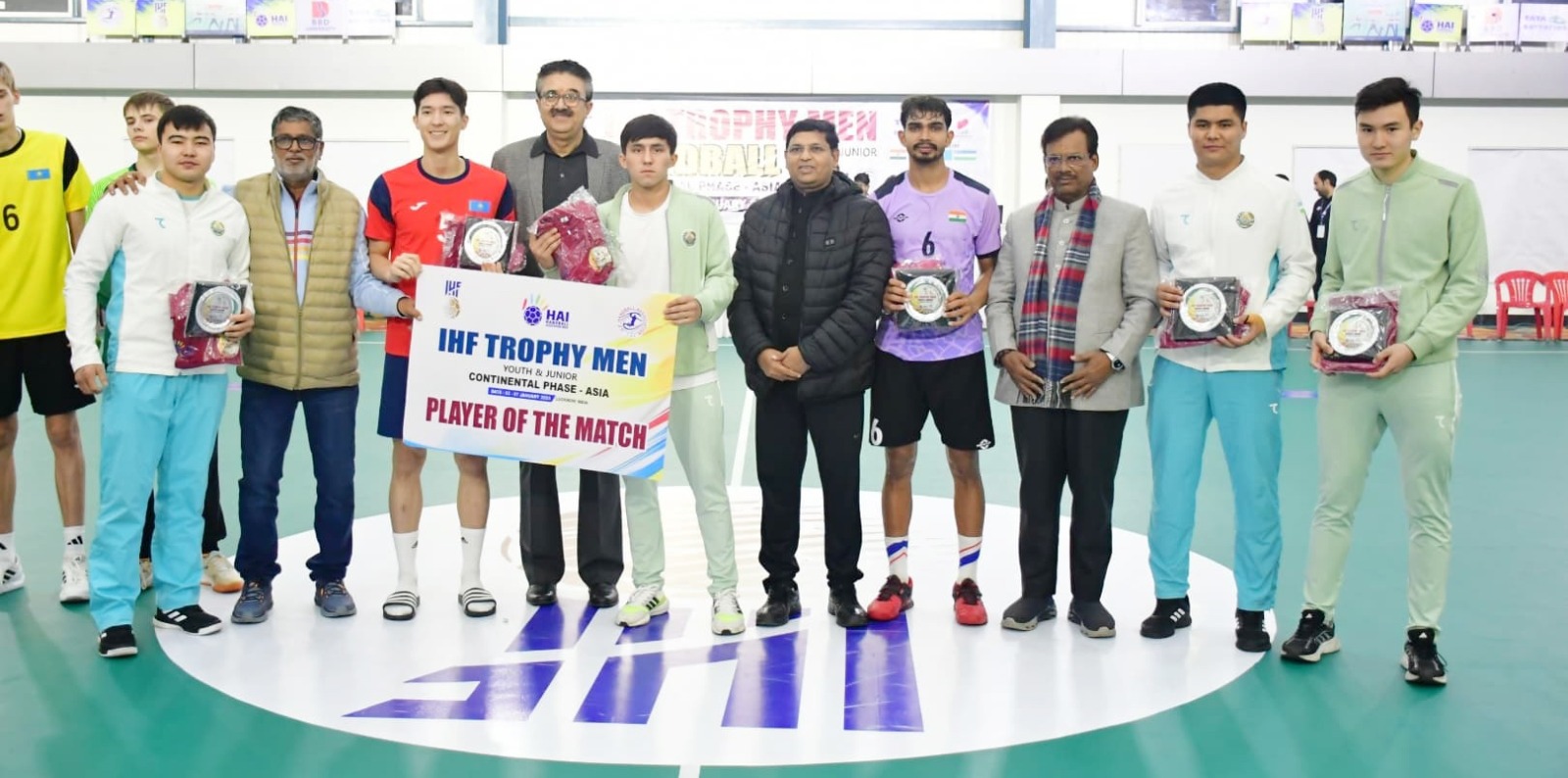 हैंडबॉल की अंतरराष्ट्रीय प्रतियोगिता आई एच एफ ट्रॉफी पुरुष यूथ एंड जूनियर कॉन्टिनेंटल फेस एशिया के जूनियर और यूथ वर्ग के सेमीफाइनल में भारत ने जगह बना ली है। आज खेले जाने वाले इन दोनों सेमीफाइनल में भारत का मुकाबला कजाकिस्तान से होगा। भारत का पहला सेमीफाइनल यूथ वर्ग में 5:00 बजे होगा जबकि जूनियर वर्ग का सेमीफाइनल शाम को 7:00 बजे खेला जाएगा। इससे पहले कल लखनऊ के केडी सिंह बाबू स्टेडियम में खेले गए मुकाबलो के प्लेयर ऑफ़ द मैच का अवार्ड प्रसार भारती के अध्यक्ष नवनीत सहगल ने खिलाड़ियों को प्रदान किया। आज दो और सेमीफाइनल मुकाबले खेले जाएंगे। पहला सेमीफाइनल यूथ वर्ग का बांग्लादेश और उज्बेकिस्तान के बीच होगा और दूसरा सेमीफाइनल भी जूनियर वर्ग में इन्हीं दोनों टीमों के बीच खेला जाएगा। इस प्रतियोगिता को जीतने वाली टीम वर्ल्ड चैंपियनशिप के लिए क्वालीफाई करेंगी।