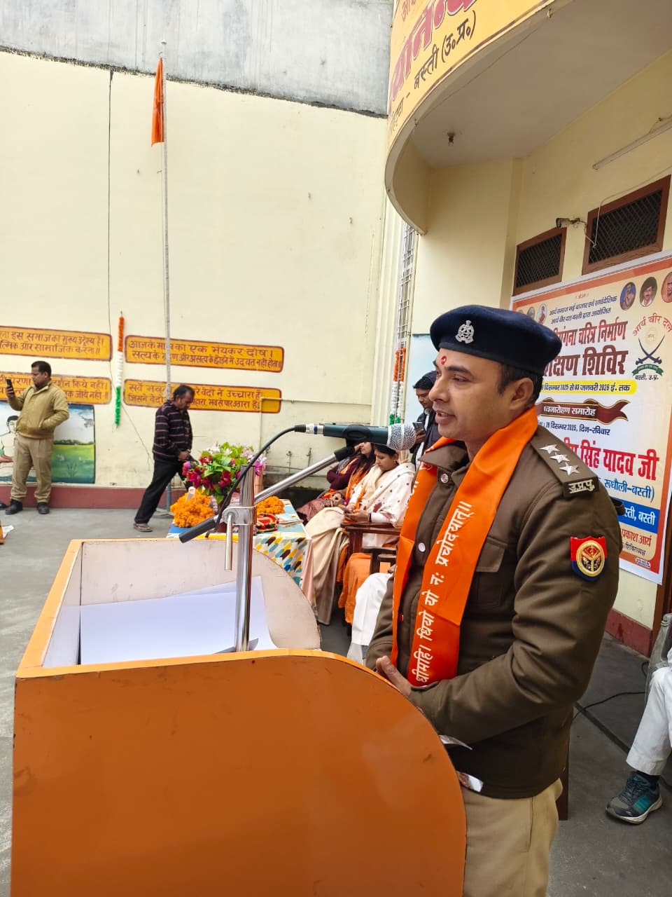 बस्ती ( अनुराग लक्ष्य न्यूज ) आर्य समाज नई बाजार बस्ती एवं स्वामी दयानंद विद्यालय सुर्तीहट्टा बस्ती के संयुक्त तत्वावधान मे आर्य वीरांगना चरित्र निर्माण शिविर का आयोजन किया गया है। जिसका मुख्य उद्देश्य बालिकाओं को समर्थ एवं सशक्त बनाना है। यह जानकारी देते हुए ओम प्रकाश आर्य प्रधान आर्य समाज नई बाजार बस्ती ने बताया कि इस शिविर में बालिकाओं को यज्ञ, योग, सर्वांग सुन्दर व्यायाम, जूडो कराटे, लेजियम, लाठी, तलवार आदि का प्रशिक्षण दिया जाएगा। इससे पूर्व कार्यक्रम का शुभारंभ वैदिक यज्ञ से हुआ तत्पश्चात पुलिस उपाधीक्षक कुलदीप सिंह यादव जी, भाजपा महिला जिला अध्यक्ष डाक्टर रोली सिंह जी, कामना पाण्डेय जिला प्रभारी महिला पतंजलि योग समिति बस्ती, योग शिक्षिका किरन जायसवाल एवं ओमप्रकाश आर्य के कर कमलो द्वारा हुआ। ध्वजारोहण के पश्चात बालिकाओं को आशीर्वाद देते हुए मुख्य अतिथि कुलदीप सिंह यादव ने बताया कि बेटियों के संस्कारित होने से दो कुल पवित्र होते हैं। एक समर्थ बेटी समृद्ध राष्ट्र की नींव होती हैं। उन्होंने वैदिक साहित्य और अंग वस्त्र देकर अतिथियों का सम्मान किया। संचालक आदित्यनारायण गिरि ने बताया कि बलिया से महिला प्रशिक्षिकाओं के नेतृत्व में बालिकाएं प्रशिक्षित होंगी। यह प्रशिक्षण पूर्णतः निःशुल्क है। दिनांक 3जनवरी को इस शिविर का समापन होगा। कार्यक्रम में नितेश कुमार, अनीशा मिश्रा, महक मिश्रा, अरविन्द श्रीवास्तव, दिनेश मौर्य, अंशिका पाण्डेय, स्वप्नल, ज्योति सोनी, शिवांगी आदि ने बच्चों के भोजन प्रशिक्षण का समुचित प्रबंध किया।