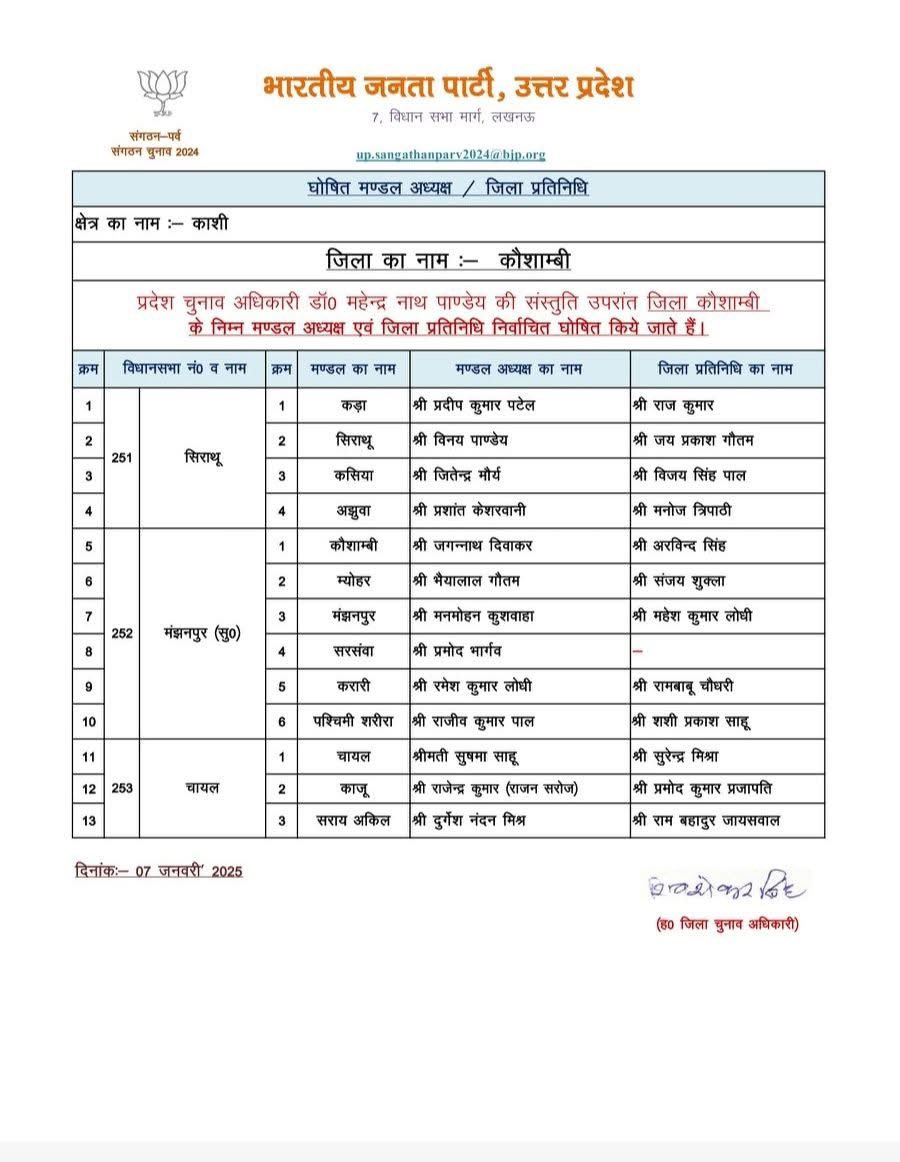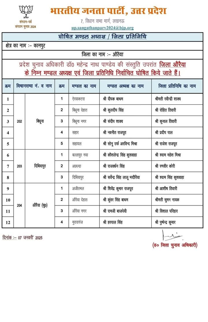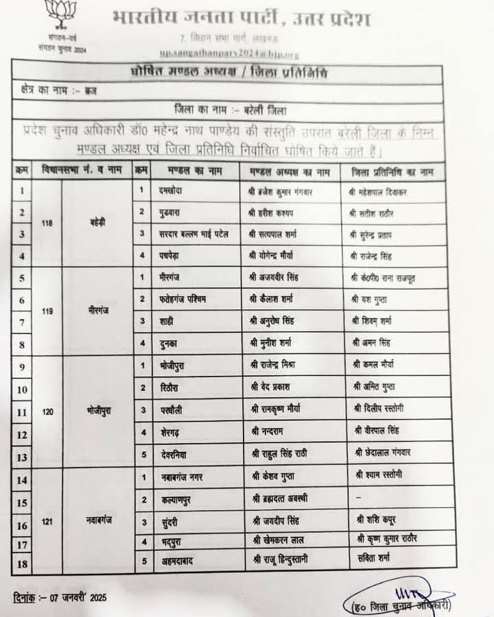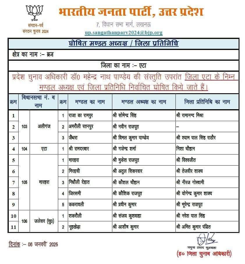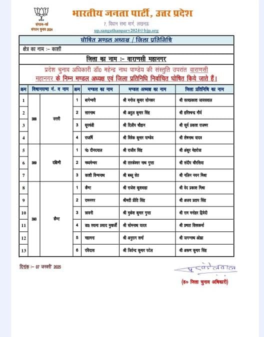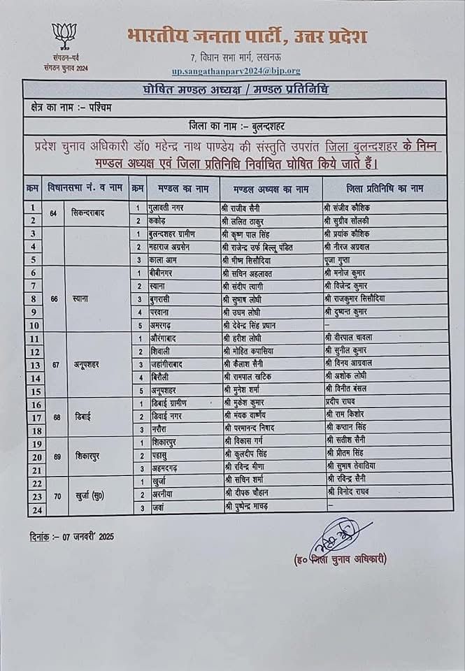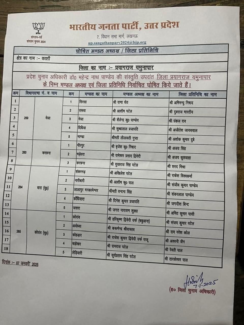 बस्ती/भाजपा ने प्रदेश के बाराबंकी,संभल,लखनऊ,सहारनपुर सहित आधे दर्जन जिलों के मण्डल अध्यक्षों की सूची जारी कर दिया है।जबकि बस्ती सहित एक दर्जनों से अधिक जिलों की सूची भाजपाइयों के आपसी जोर आजमाइश में रुकी हुई है।मंडल अध्यक्षों की सूची जारी न होने के कारण 7 से 10 जनवरी के नामांकन प्रक्रिया पर भी ग्रहण लग सकता है।