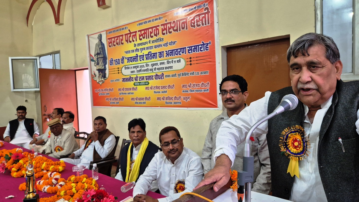 बस्ती । लौह पुरूष सरदार बल्लभ भाई पटेल के 150 वीं जयन्ती पर शुक्रवार को सरदार पटेल स्मारक संस्थान परिसर में सांसद राम प्रसाद चौधरी ने पटेल जी की प्रतिमा का लोकापर्ण किया। इसके बाद छत्रपति साहू जी सभागार में गोष्ठी का आयोजन किया गया। मुख्य अतिथि के रूप में गोष्ठी को सम्बोधित करते हुये पूर्व कैबिनेट मंत्री सांसद राम प्रसाद चौधरी ने कहा कि किसान के बेटे के रूप में पटेल जी ने उच्च शिक्षा प्राप्त करने के बावजूद अपनी सुविधा की जगह देश के हितों को महत्व दिया। ऐसे महापुरूष विरले होते हैं जो संकट में बहादुरी का परिचय देते हुये विजेता बनकर उभरे। उन्होने 562 रियासतों को एकता के सूत्र में बांध कर भारत के स्वरूप को सशक्त बनाया। कहा कि देश को आजाद कराने से लेकर गृह मंत्री के रूप में देश के निर्माण में उनके योगदान से युवाओं को प्रेरणा लेना चाहिये।