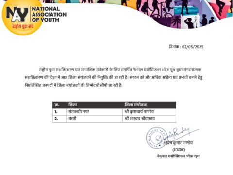 नेशनल एसोसिएशन ऑफ यूथ द्वारा जिला संयोजकों की नियुक्ति, बस्ती व संतकबीरनगर को मिले ऊर्जावान नेतृत्व